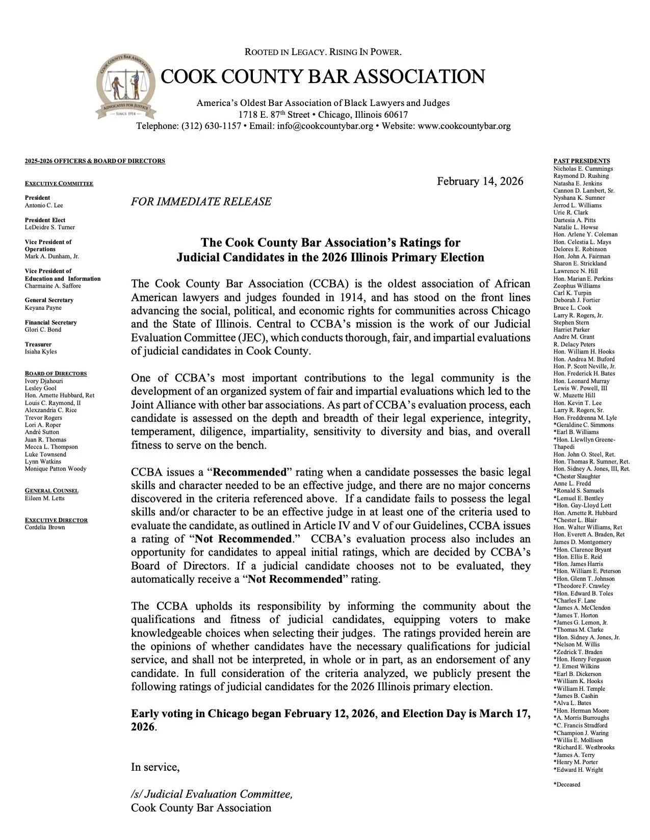For over 100 years, the Cook County Bar Association has aggressively supported the civil, political, and economic rights of the Black community and its members.