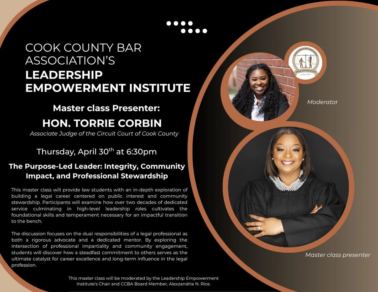 It is with great humility and a profound sense of purpose that I step into the role as the 111th President of this historic organization. I stand on the shoulders of the fearless leaders who came before me—leaders who guided the CCBA with tremendous vision, integrity, and resolve. Throughout my career in public service, I have remained grounded in the belief that “to whom much is given, much will be required.” My leadership experience extends throughout the CCBA, Cook County State’s Attorney’s Office, Illinois State Bar Association, National Bar Association, American Bar Association, NAACP, Advisory Council for the Illinois Supreme Court Commission on Professionalism, and other local organizations in the city of Chicago. As a catalyst for justice, I believe in sowing seeds of hope, trusting they will cultivate meaningful growth amongst our peers and within our communities.